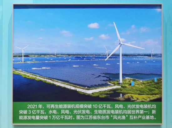 一件件實(shí)物模型、一段段生動(dòng)視頻、一組組亮麗數(shù)據(jù)……在這個(gè)異彩紛呈的展覽上,讓大家感到振奮的元素,數(shù)不勝數(shù)。特別是在“堅(jiān)持人與自然和諧共生 美麗中國(guó)建設(shè)邁出重大步伐”主題展區(qū),中國(guó)節(jié)能位于江蘇省東臺(tái)市的“風(fēng)光漁”互補(bǔ)產(chǎn)業(yè)基地、甘肅省酒泉市風(fēng)光電基地項(xiàng)目和參與制作的大氣環(huán)境質(zhì)量改善展示平臺(tái)亮相展覽,令全體中國(guó)節(jié)能人倍感振奮和自豪。