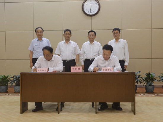 8月9日,中國節(jié)能與西安市人民政府在西安市簽署戰(zhàn)略合作協(xié)議。集團公司黨委書記、董事長宋鑫,陜西省西安市委副書記、市長葉牛平出席簽約儀式。集團公司黨委常委、副總經(jīng)理曹華斌,西安市委常委、常務副市長呂來升代表雙方簽約。