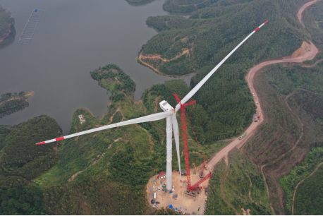 11月22日,風電廣西公司中節(jié)能欽南三期項目首臺6.7兆瓦風機順利完成吊裝,該臺風機是目前風電公司系統(tǒng)內(nèi)單機容量最大、塔筒高度最高、葉片最長、起重量最大的風機。