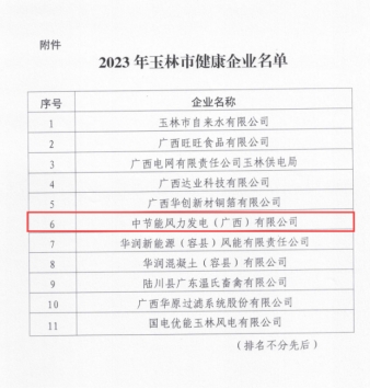 風(fēng)電廣西公司獲“玉林市健康企業(yè)”榮譽(yù)稱號 |