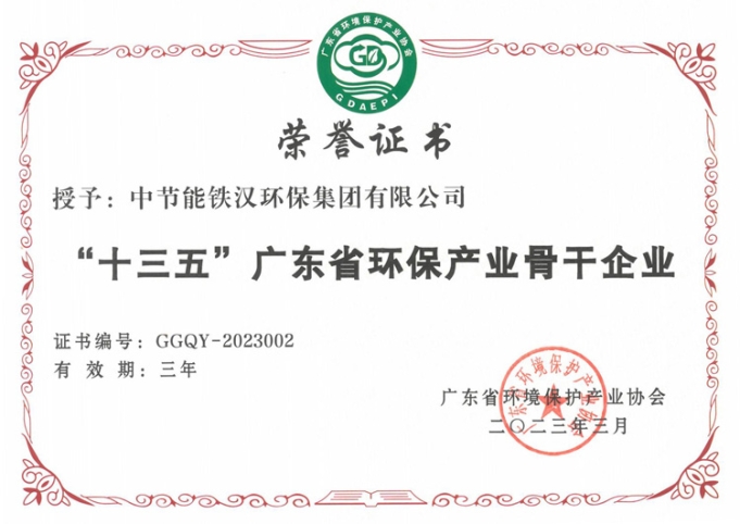 中節(jié)能鐵漢所屬鐵漢環(huán)保獲得“十三五”廣東省環(huán)保產(chǎn)業(yè)骨干企業(yè)榮譽(yù)稱號(hào) |