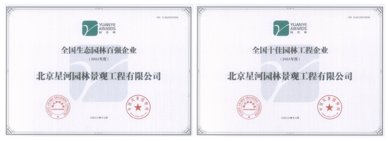 近日,中節(jié)能鐵漢所屬鐵漢星河獲得由中國(guó)風(fēng)景園林網(wǎng)、園冶杯組委會(huì)頒發(fā)的“全國(guó)生態(tài)園林百?gòu)?qiáng)企業(yè)”“全國(guó)十佳園林工程企業(yè)”兩項(xiàng)殊榮。